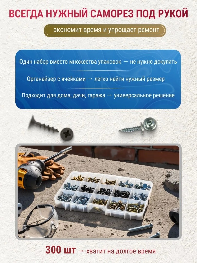 Набор крепежа " Домашний №3 " саморезы+дюбеля - 275 шт