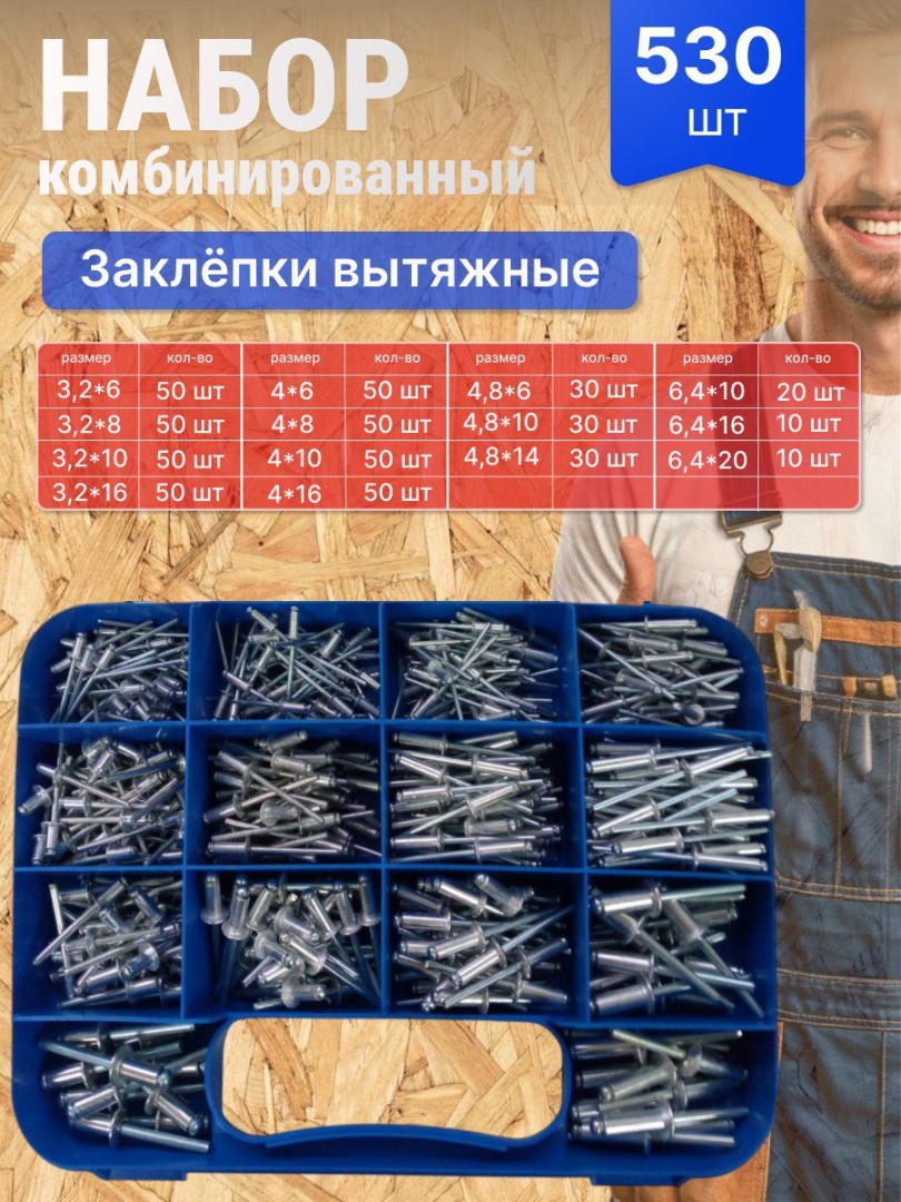 Набор комбинированный " Заклепки вытяжные " - 530 шт